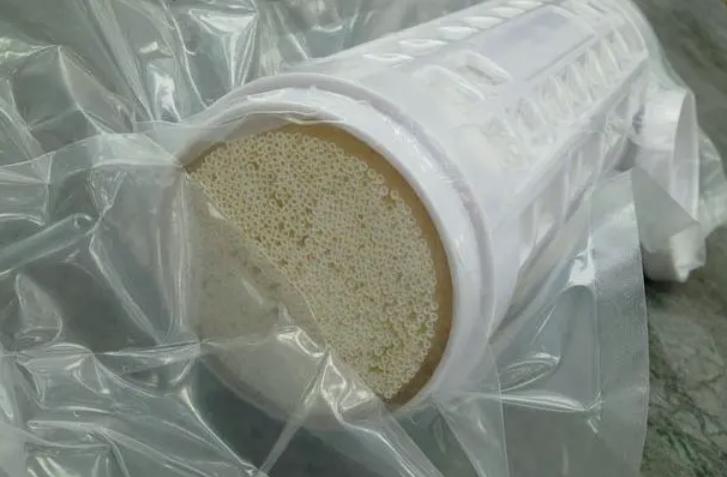 一個中空纖維超濾膜組件主要是由成百到上千根中空纖維絲和膜殼兩部分組成,一般將中空纖維內徑在0.6-6mm之間的超濾膜稱為毛細管式超濾膜,毛細管式超濾膜因內徑較大,因此不易被大顆粒物質堵塞,更適用于過濾原液濃度較大的場合。